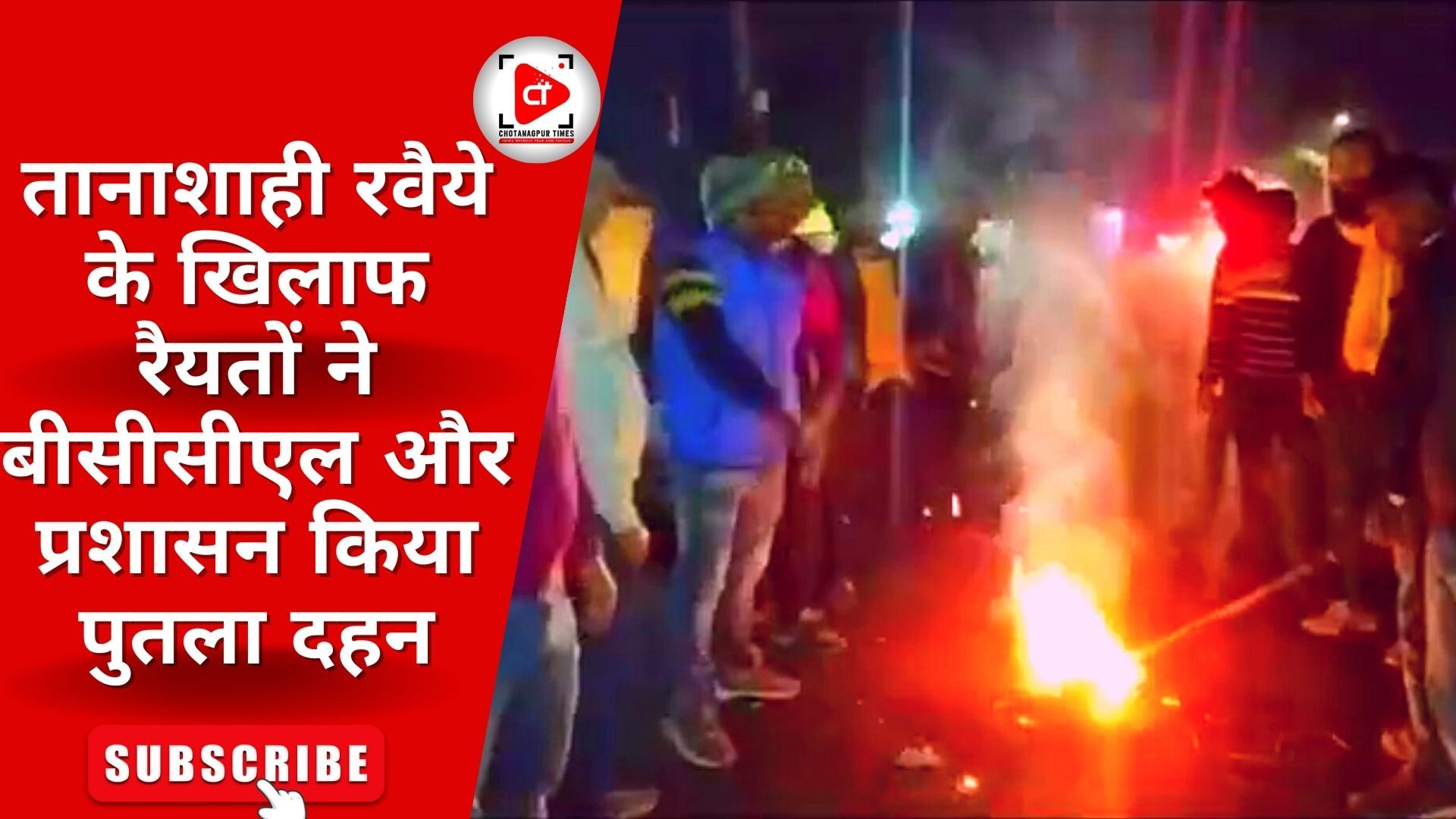 जमीन अधिग्रहण करने के खिलाफ रैयतों ने बीसीसीएल और जिला प्रशासन किया पुतला दहन