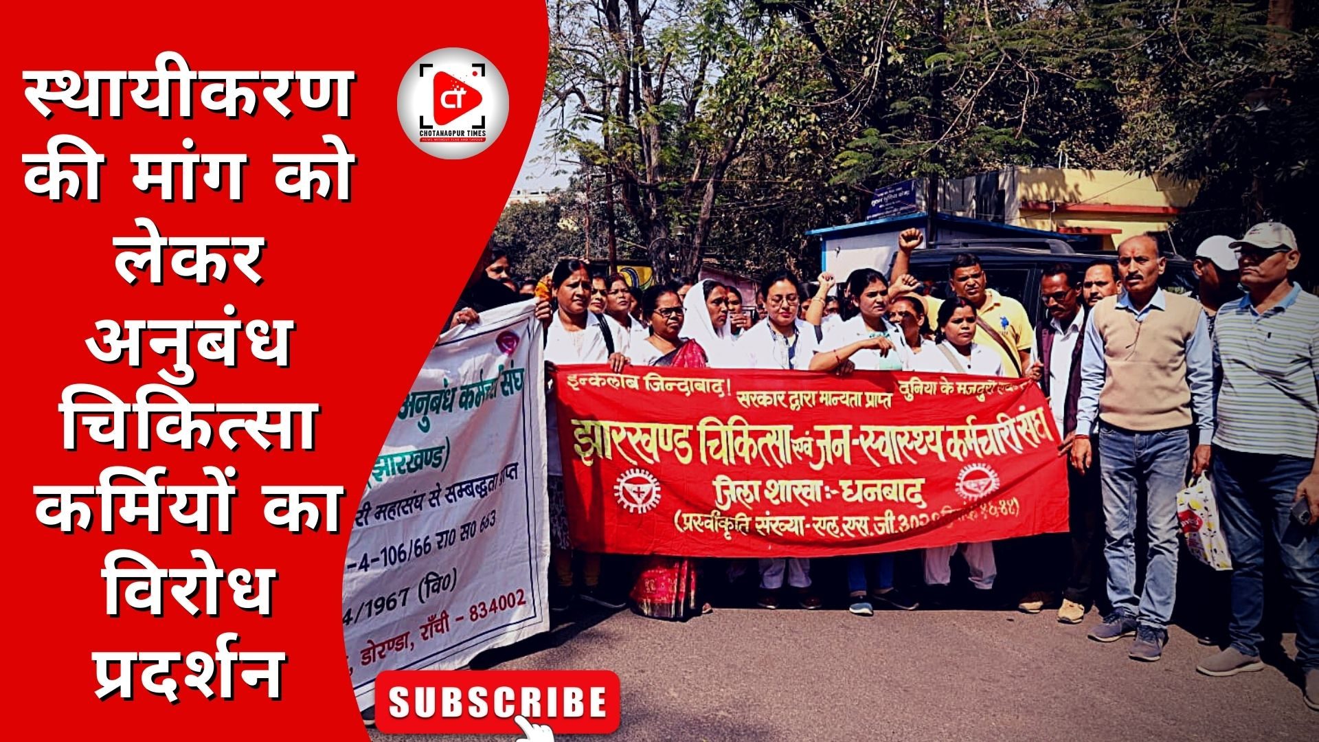 स्थायीकरण की मांग को लेकर अनुबंध चिकित्सा कर्मियों ने निकाली रैली